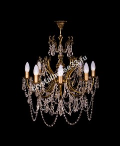 Бронзовая люстра 5 ламп выполнена в классическом стиле с прозрачными хрустальными подвесками "капля". Корпус люстры изготовлен литьем из бронзы. 5 ламп, желательно светодиодными в виде свечей, мощность. от 9 вт., цоколь Е-14, которых достаточно для освещения комнаты площадью до 18 кв.м. Крепление на крюк. По желанию можно украсить другими подвесками, типа шар, пирамида, и т.д., а так же цветными подвесками.