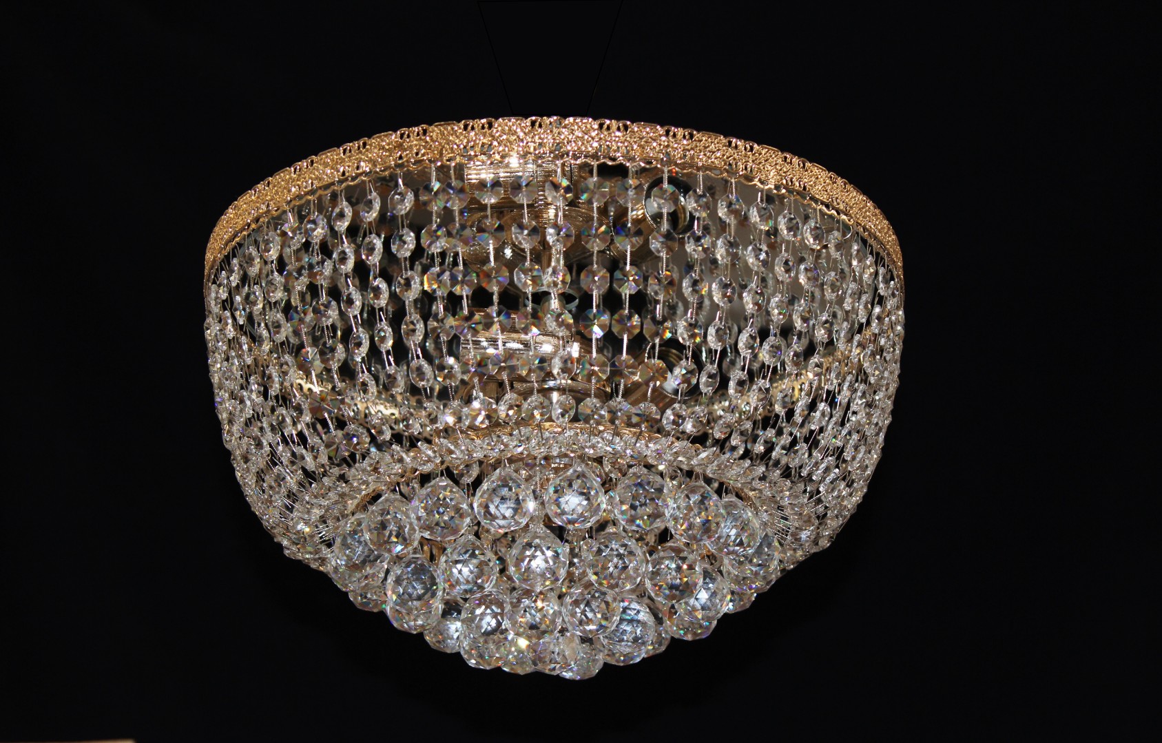 Потолочная люстра с зеркалом. Крепление на крюк. Цоколь лампы  Е-27, 60вт. Подвески прозрачные, по желанию можно комплектовать цветными.