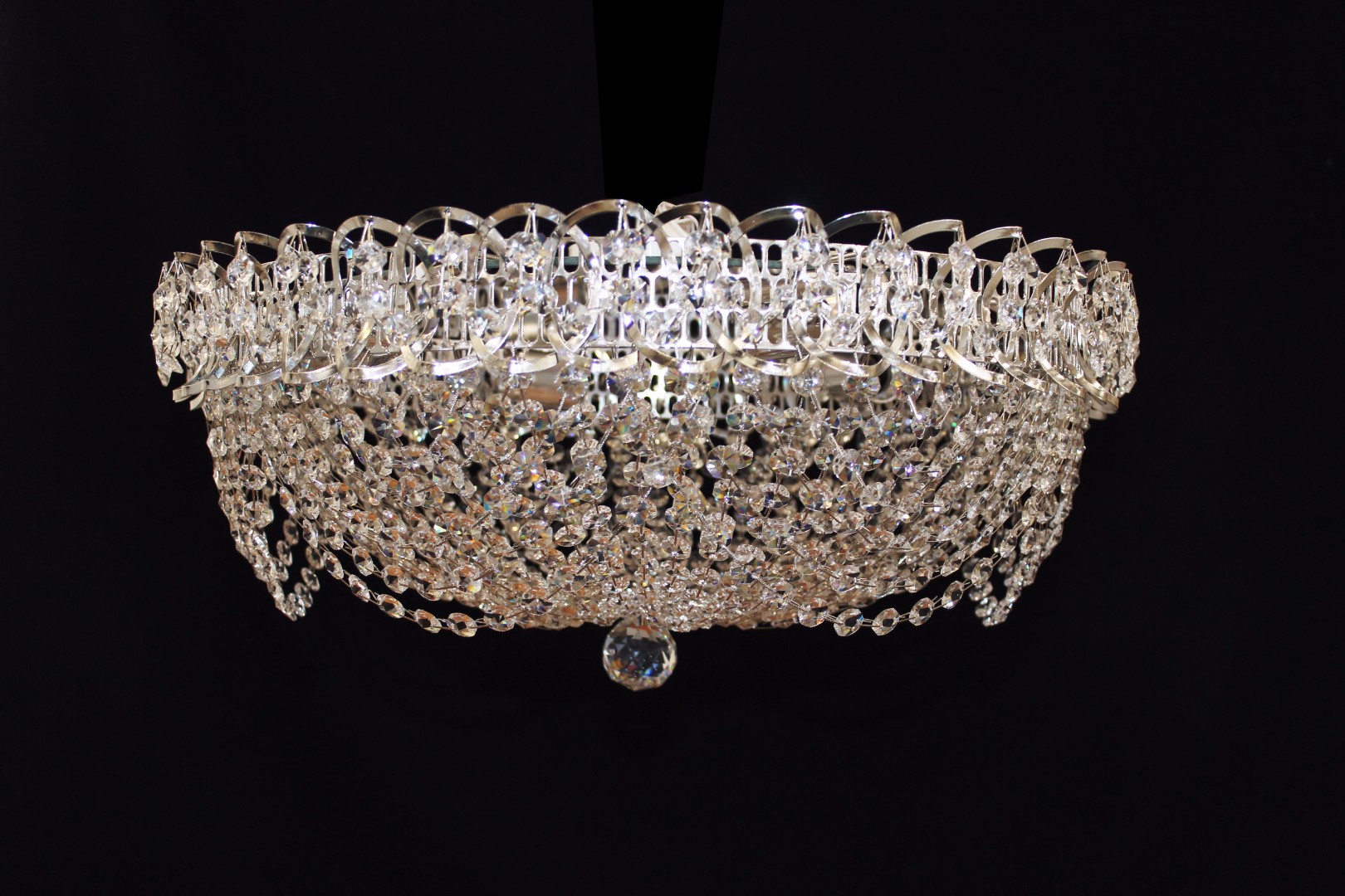 Потолочная люстра с зеркалом для залов, спален. Крепление на крюк, цоколь Е 27. Подвески прозрачные.